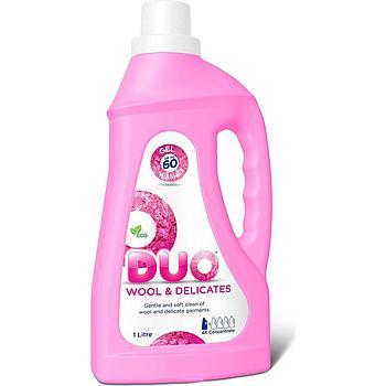 «DUOWOOL & DELICATES» •Концентрированный гель для стирки шерстяных и деликатных тканей 1000мл=4л/ до 60стирок. •Бережная стирка, сохраняет структуру волокон даже при многократной стирке. •Рекомендован для стирки высококачественного текстиля (шерсть, шелк, лен и т.д.), может использоваться для стирки мембранных тканей типа Gore-Tex(спортивная одежда). •Для машинной и ручной стирки в диапазоне от 10 до 40С . •Полностью биоразлагаемые компоненты, не содержит искусственных отдушек. •Предупреждает накипь на водонагревательном элементе. •Полностью выполаскивается. Срок годности:5 лет