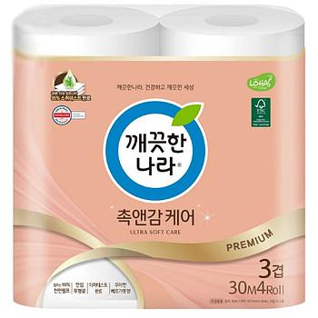 Премиальная особомягкая туалетная бумага Kleannara с повышенной впитываемостью (трехслойная, с тиснёным рисунком) 30 м х 30 рулонов