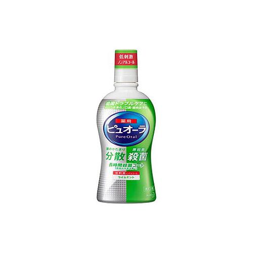 Антибактериальный ополаскиватель для полости рта, для профилактики кариеса и гингивита KAO Pure Oral лайм и мята, бутылка 420 мл