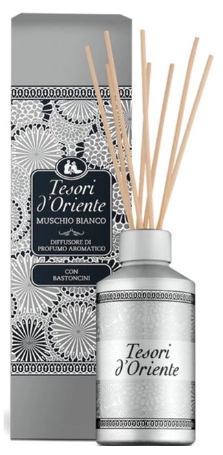 Tesori d'Oriente Белый мускус — элегантный ароматический диффузор с палочками равномерно и постоянно излучает тот же опьяняющий аромат, что и наши ароматные духи с белым мускусом. Натуральные ротанговые палочки распространяют ароматное масло в воздух, обеспечивая до восьми недель постоянного аромата и создавая приятную атмосферу расслабления и благополучия во всех помещениях. Благодаря изысканному дизайну он элегантно обставит любую комнату в доме.